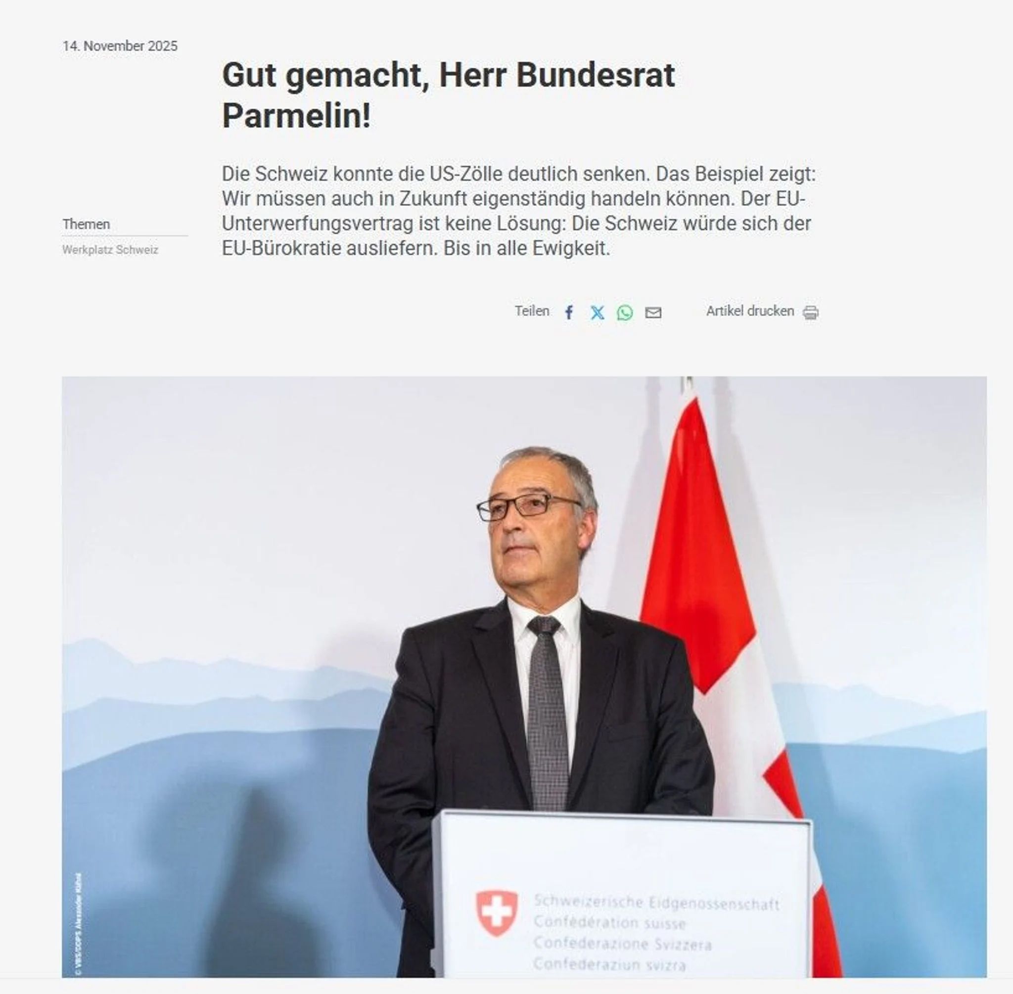 Die SVP veröffentlichte dennoch bereits am Mittag eine Mitteilung, mit der sie SVP-Bundesrat und Wirtschaftsminister Guy Parmelin zu seinem Erfolg gratulierte. Auch in dieser Mitteilung, die die Partei später wieder zurückzog, war von 15 Prozent die Rede.