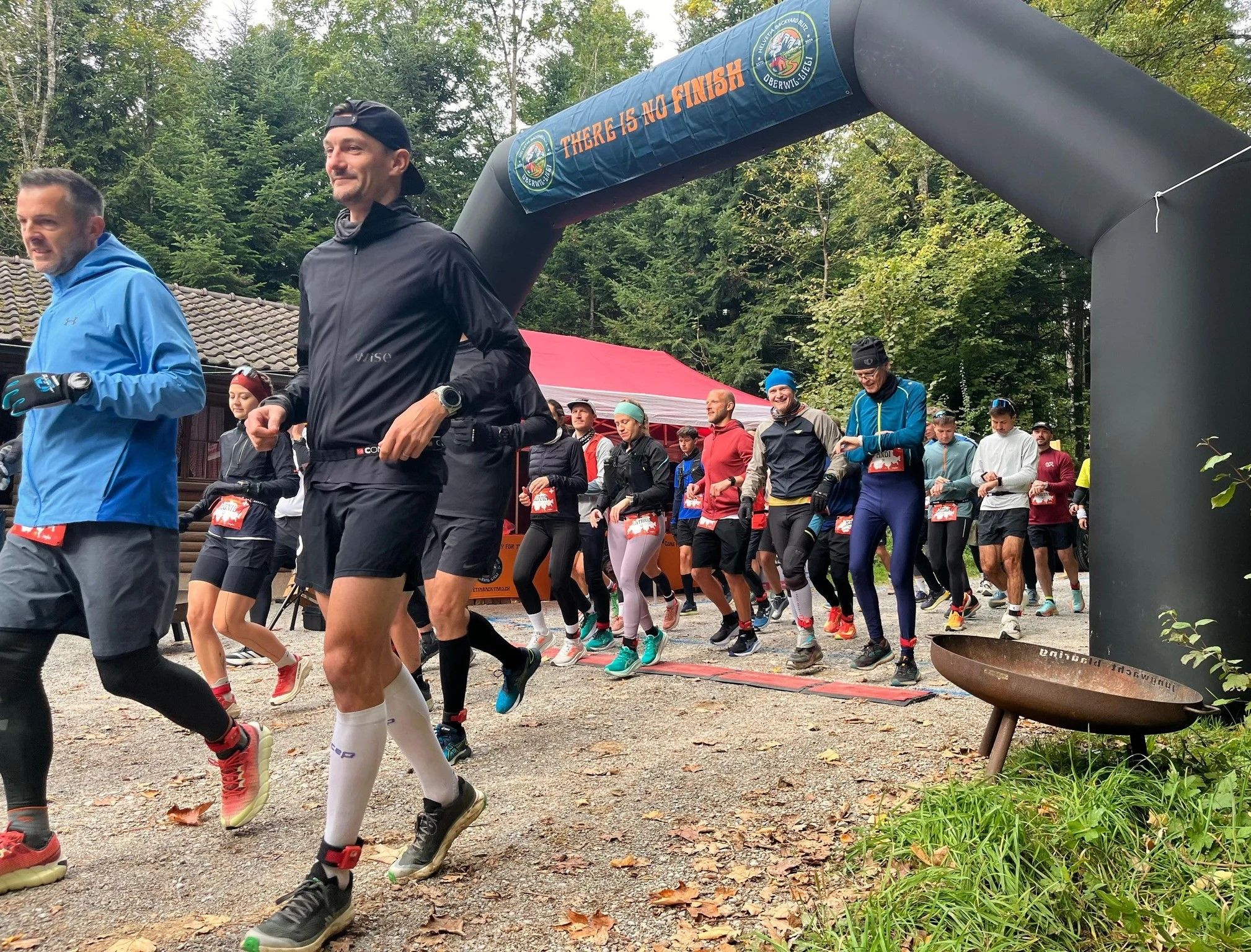 «Es gibt kein Ziel», steht auf dem Startbogen. Jede volle Stunde starten die Läuferinnen und Läufer in dieselbe Runde von exakt 6,706 Kilometern – und das machen sie so lange, bis nur noch eine Person übrig ist.
