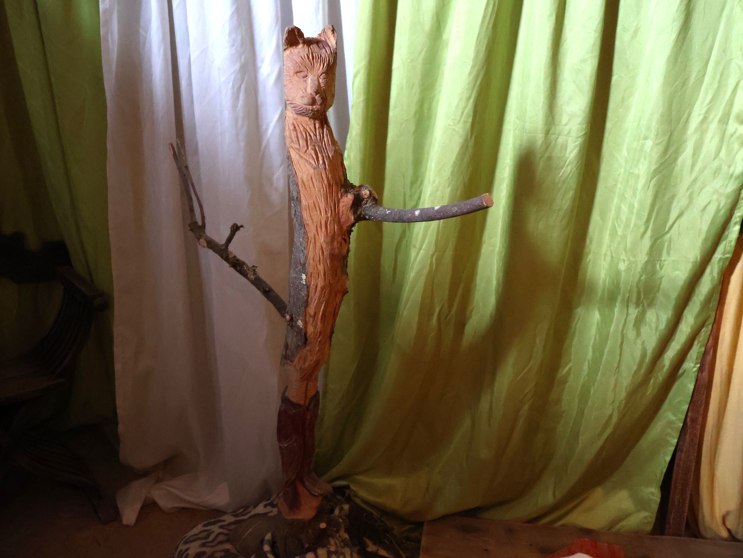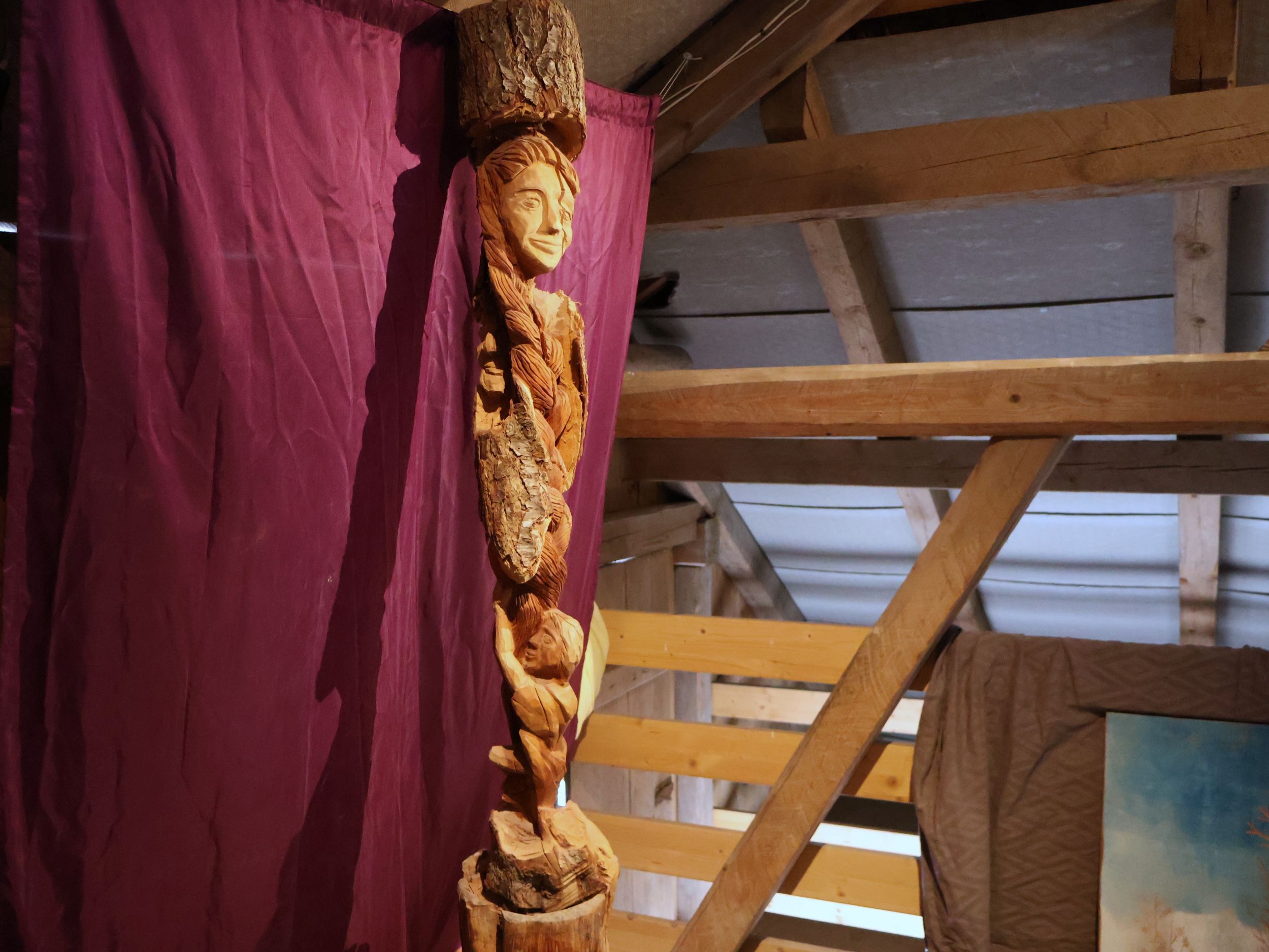 Es geht hoch in die «MärliSchüür». Hier führt sie ihre junge Zuhörerschaft in Märchenwelten. Die Atmosphäre ist gemütlich: Auf einem Stuhl döst die Nachbarkatze gemütlich vor sich hin. Vor der Treppe steht eine hölzerne Hexe. Sie ist nur eine von zahlreichen geschnitzten Figuren und Requisiten. Denn es sind genau solche Holzfiguren, die Eleonora Tschamper zu ihrer heutigen Tätigkeit geführt haben.