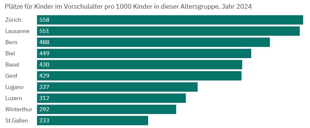 Das hilft ihnen, ein anderes Problem abzufedern: Der Nachwuchs fehlt. Im vergangenen Jahr gab es in der Schweiz 421’651 Kinder im Alter von 0 bis 4. Das sind 4 Prozent weniger als noch 2021. Dieser Trend dürfte weitergehen, denn die Geburtenrate sinkt Jahr für Jahr und die Zuwanderung war zuletzt rückläufig. Deutschland zählt dieses Jahr zum ersten Mal seit 20 Jahren weniger Kita-Kinder als im Vorjahr. So weit ist die Schweiz nicht, doch die Entwicklung zeigt in dieselbe Richtung.