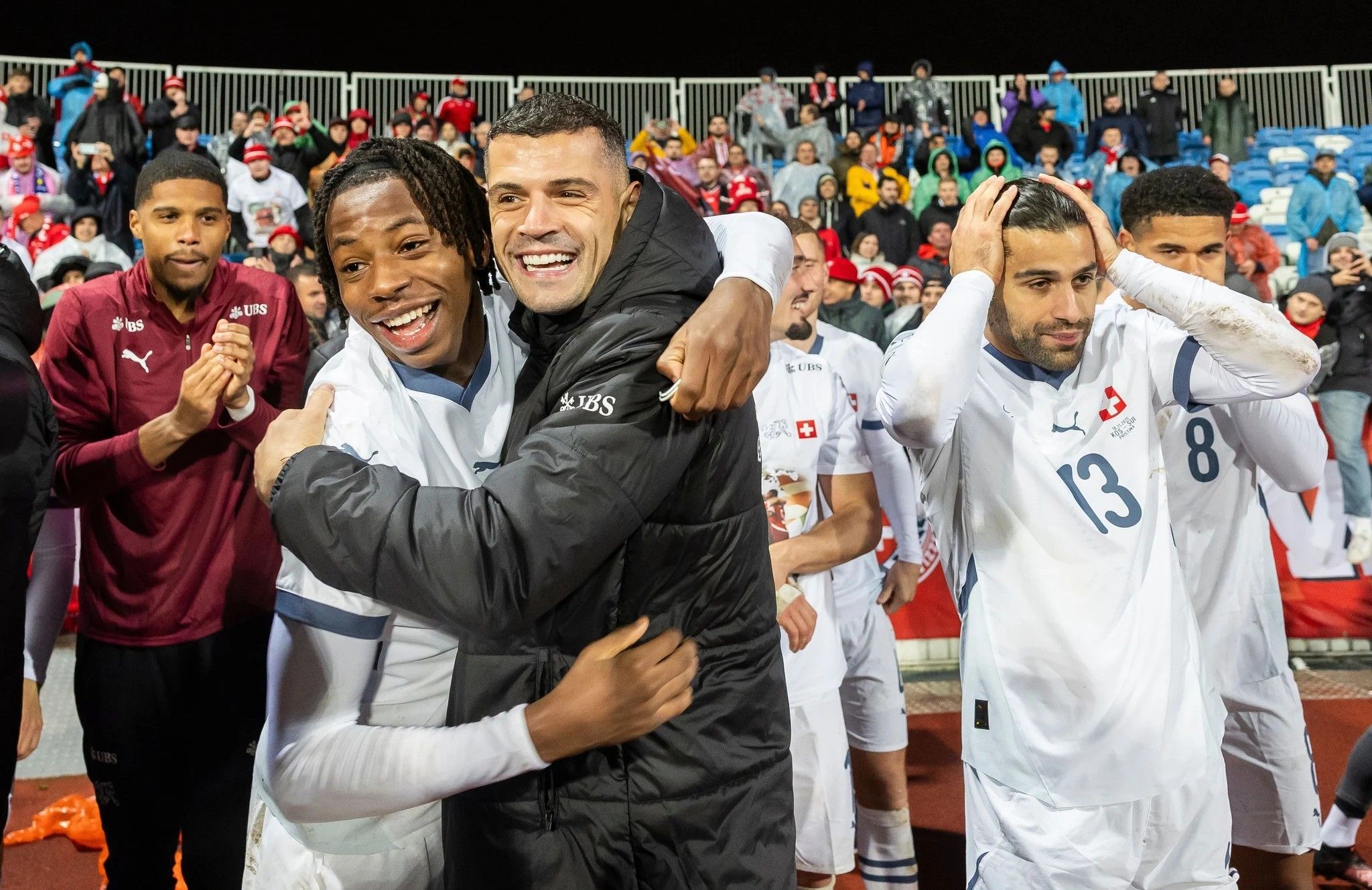 Hudelwetter, schon den ganzen Tag über, hin oder her. Nach dem Schlusspfiff dürfen sich die Schweizer freuen, auch wenn sie das nicht so überschwänglich tun. Vielleicht, weil das alles Routine ist. Denn die Nati nimmt nach dem 1:1 zum sechsten Mal in Folge am grössten Sportanlass der Welt teil. Und die Kosovaren schnuppern erstmals an der WM-Endrunde und müssen hierfür die Playoffs erfolgreich bestreiten. Und natürlich darf sich Murat Yakin freuen; sein Vertrag verlängert sich bis zum Ende der nächsten EM-Qualifikationskampagne. Aber per sofort ist der Nati-Trainer damit beschäftigt, die WM in den USA, Mexiko und Kanada vorzubereiten.