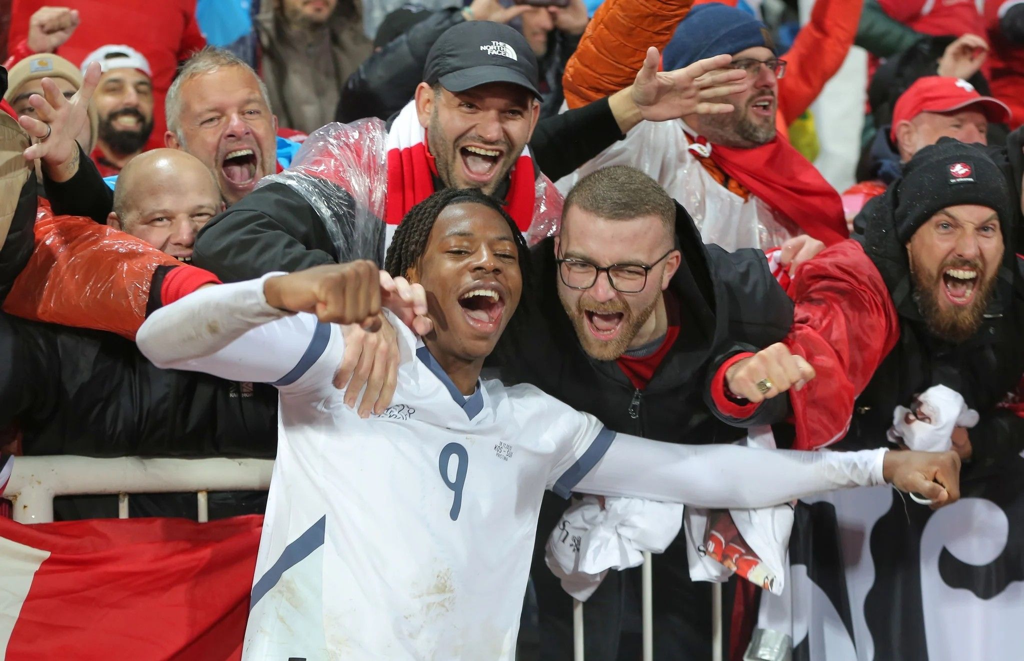 Johan Manzambi lässt sich von den Fans feiern. – Bild: Visar Kryeziu (Pristina, 18. 11. 2025)
