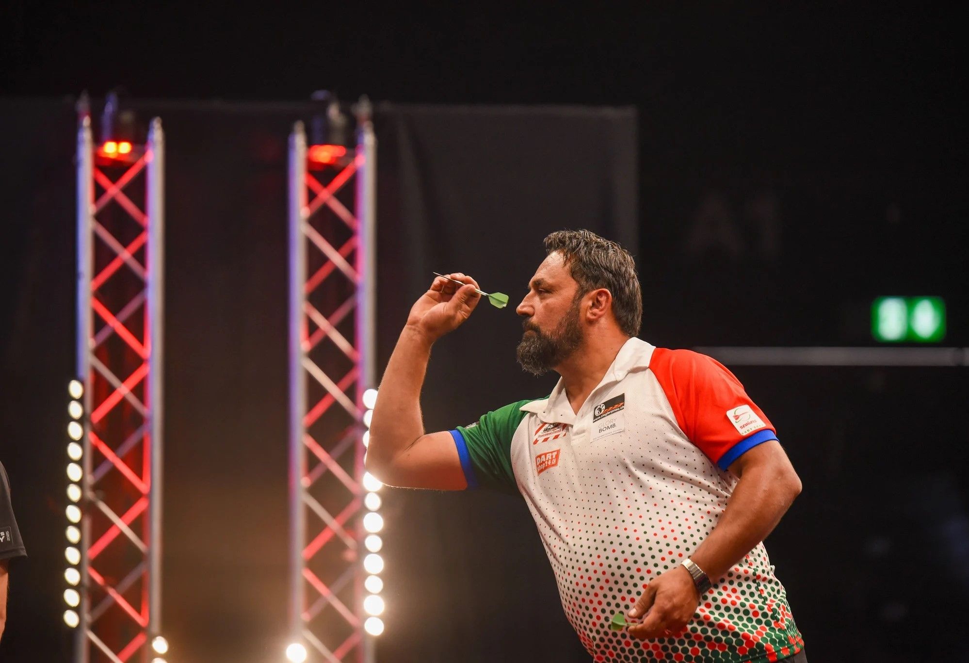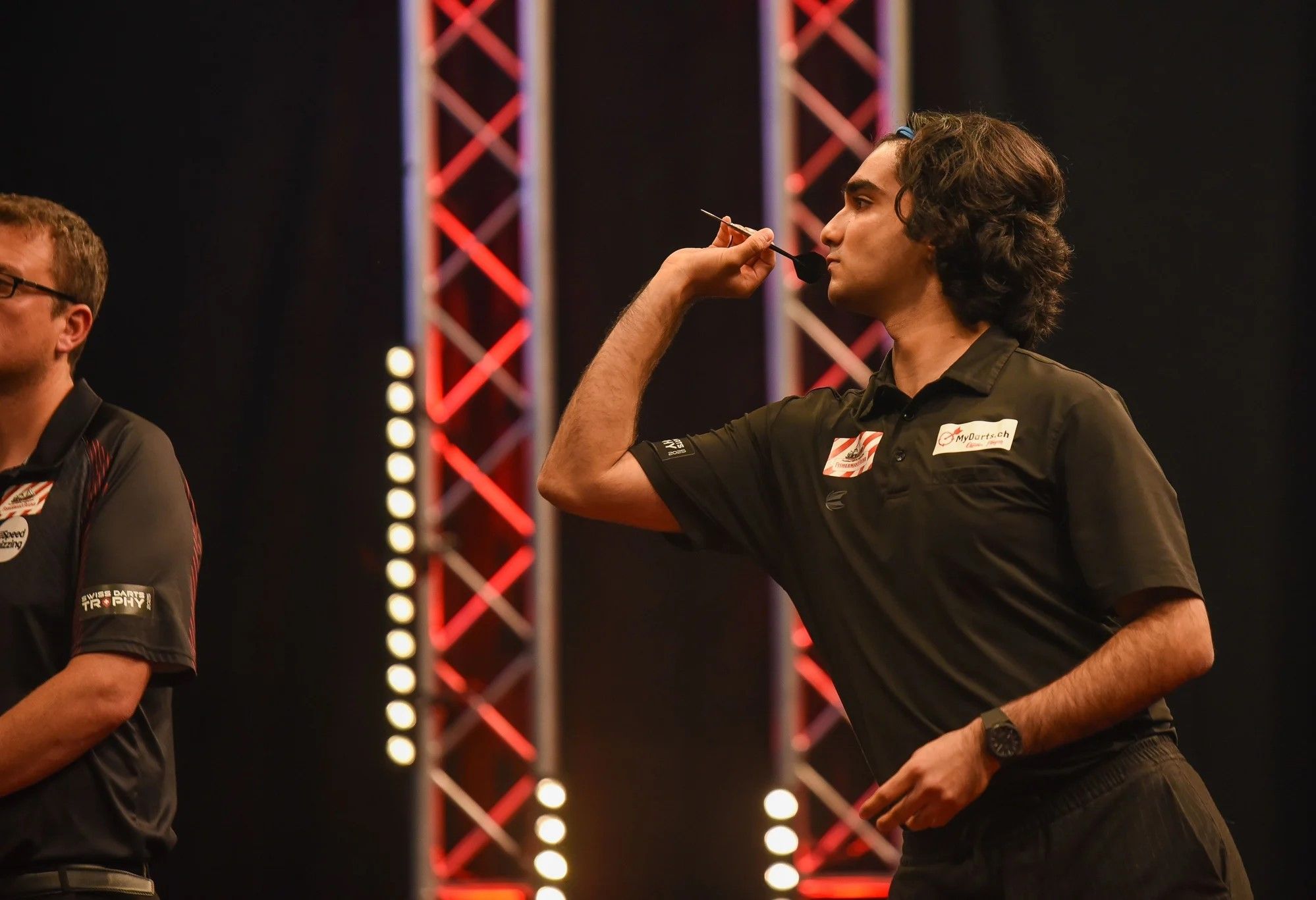 Die St.Jakobshalle bebt, als Stefan Bellmont um 21 Uhr als grösste Schweizer Darts-Hoffnung zu «Lift u up» von Gotthard erstmals die Bühne in Basel betritt. Insgesamt vier Schweizer haben sich am Donnerstag aus über 70 Teilnehmern für das Turnier qualifiziert. Neben Bellmont sind auch Rocco Fulciniti, Denis Schnetzer und der junge Ansh Sood mit dabei.