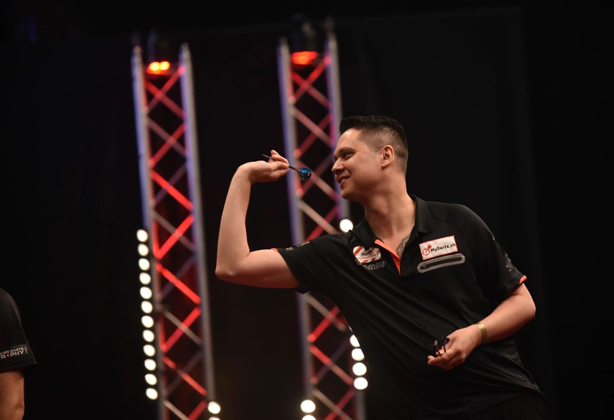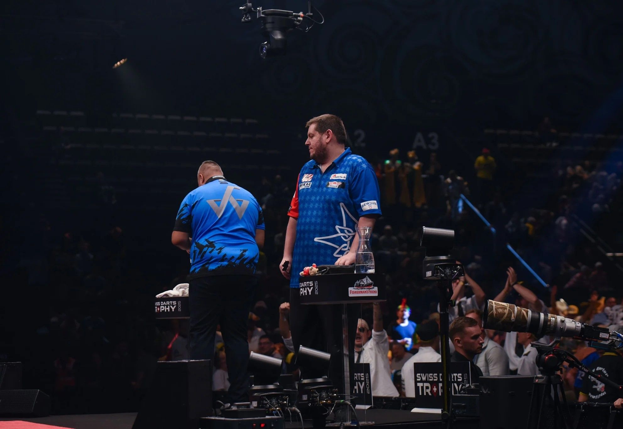 Die Abendsession startet gleich mit der nächsten Premiere: Der Basler Lokalmatador Schnetzer alias «Schnitzel», macht seinen ersten Walk On auf der PDC-Bühne zu Let’s Go von Arees. Gegen den Niederländer Chris Landman (Weltnummer 70) kann er gar drei Legs für sich entscheiden und wirft obendrauf noch eine 180, die ebenfalls mit tosendem Applaus gefeiert wird. Am Ende muss er sich jedoch mit 3:6 geschlagen geben. «Mein Ziel heute war, es einfach zu geniessen und wenigstens ein Leg zu gewinnen. Dass daraus drei geworden sind ist unglaublich», erklärt der 39-jährige technische Kaufmann mit einem Lächeln im Gesicht.