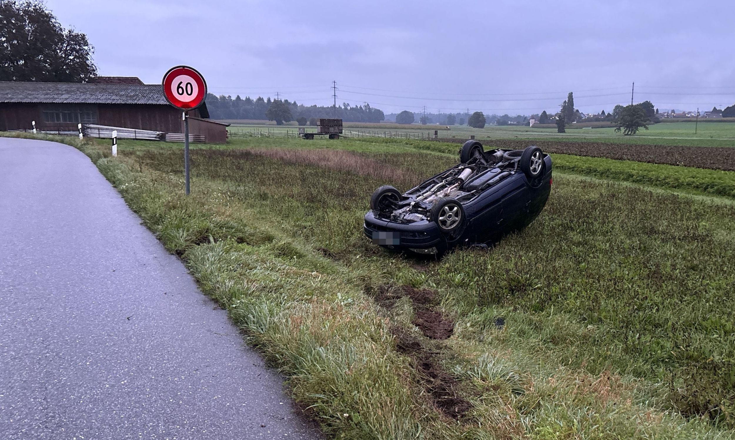 Auf dem Schweissacker in Wolfwil kam es am Samstagmorgen zu einem Selbstunfall. Das Fahrzeug überschlug sich und kam auf dem Dach zum Stillstand. Es wurde niemand verletzt.