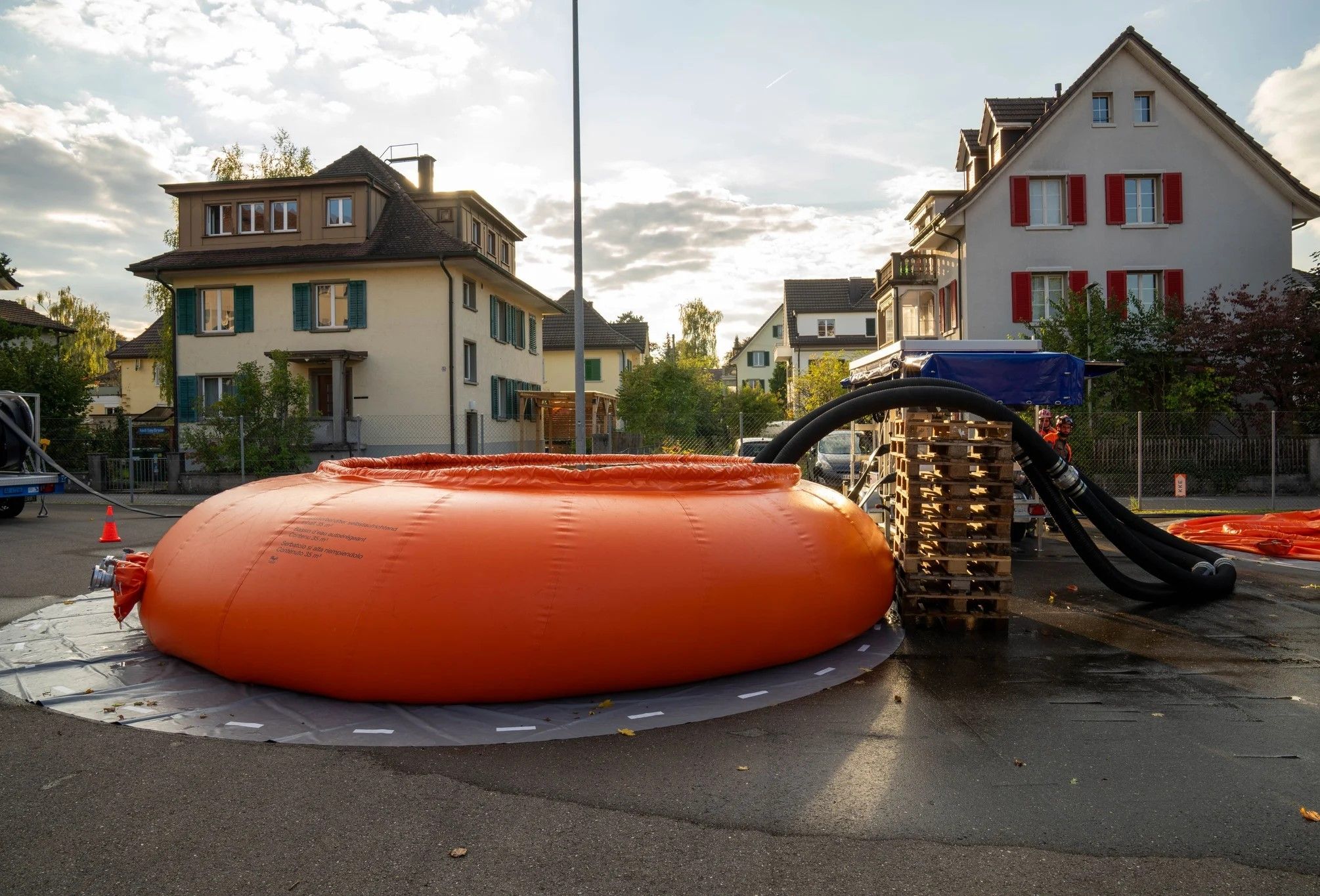 Zum Anhänger mit der Pumpe kommt ein zweiter mit Schläuchen hinzu. «Das Wasser muss ja wegtransportiert werden – es würde nichts bringen, wenn wir es zu einem Keller hinaus und direkt in den nächsten hineinpumpen», sagt Müller. 400 Meter weit reichen die Schläuche, die mit denen der Feuerwehr kompatibel sind und so falls nötig noch weiter verlängert werden könnten. Das Wasser wird beispielsweise in einen Fluss oder eine Kläranlage geleitet. Das mobile System ist innerhalb von rund 20 Minuten einsatzbereit. Die Pumpe selbst kostet rund 190’000 Franken, Schläuche und Anhänger um die 50’000 Franken.