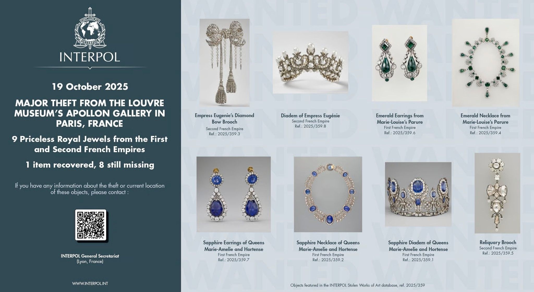 Von den gestohlenen Schmuckstücken fehlt eine Woche nach dem Diebstahl noch jede Spur. Bei dem Einbruch erbeuteten die Täter Juwelen im Wert von rund 88 Millionen Euro.